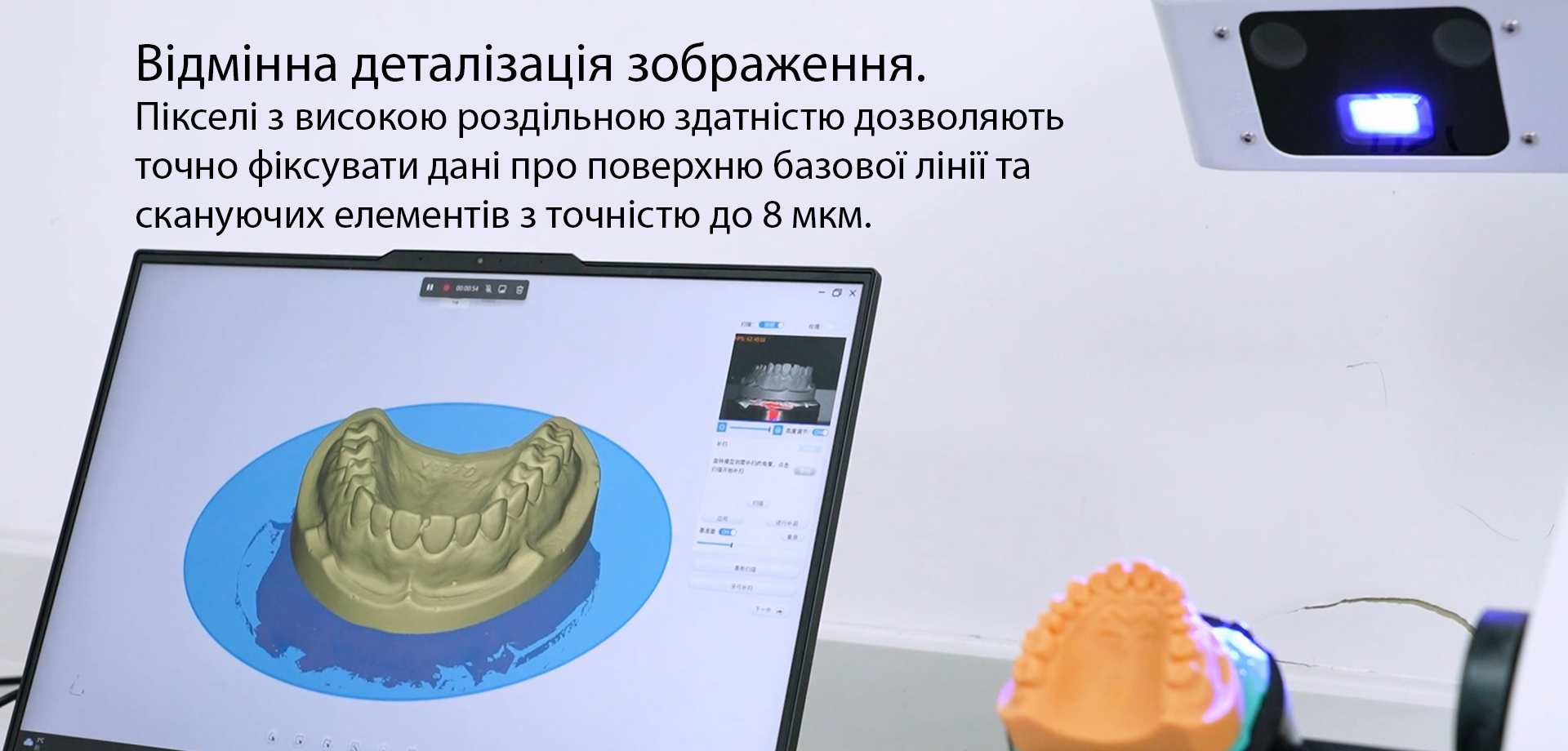 Настільний сканер DS7 для стоматології використовує передові технології штучного інтелекту та алгоритми в поєднанні з незалежно розробленим інтелектуальним програмним забезпеченням для сканування, що дозволяє швидко та ефективно виконати весь процес сканування, який займає всього 2 хвилини. Ця технологія значно покращує інтелектуальний робочий процес у стоматологічній галузі, надаючи користувачам кращий та більш якісний сервіс.